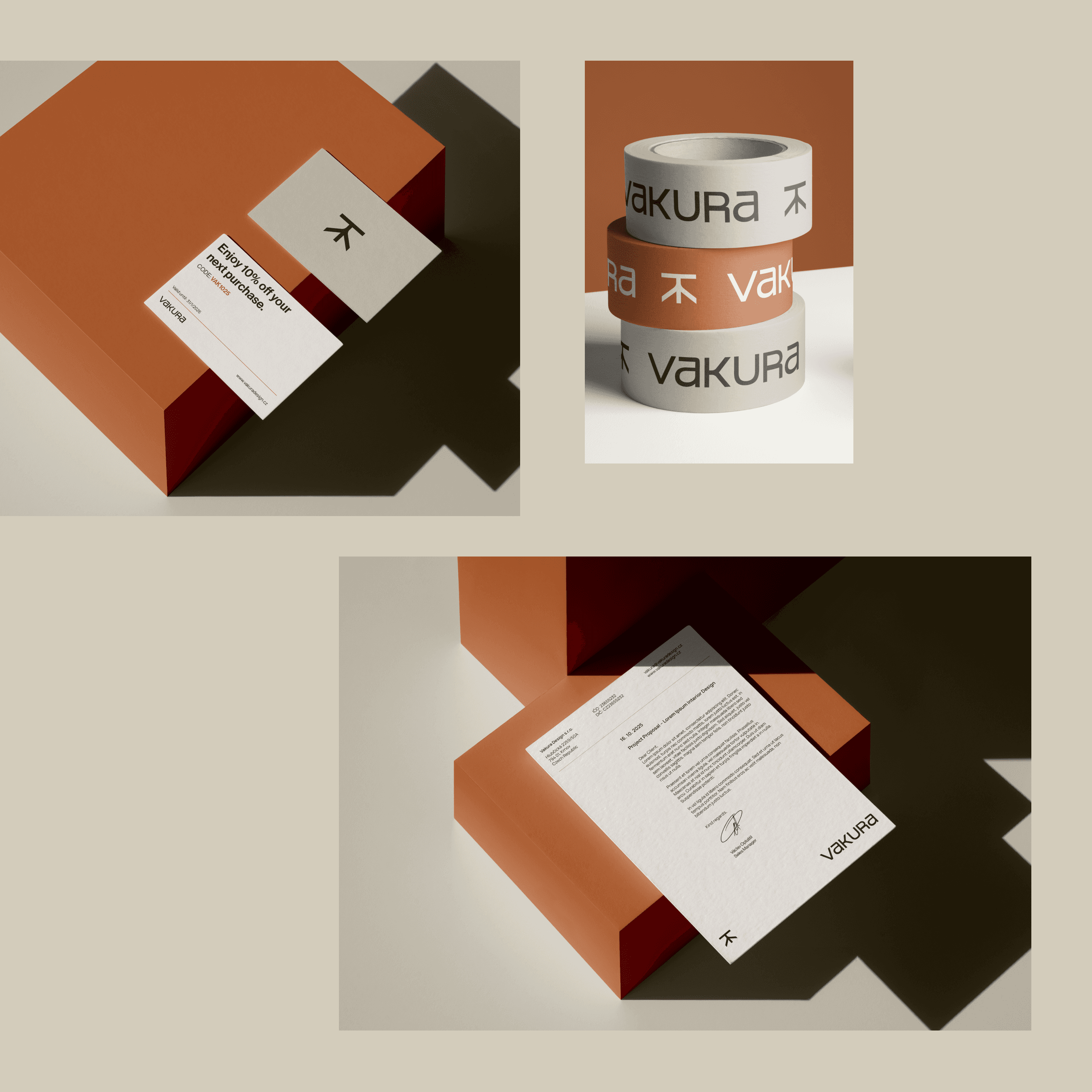 Mým hlavním cílem v rámci projektu Vakura bylo přetavit hlubokou filozofii vědomé jednoduchosti do kompletní a plně funkční vizuální identity a komunikační strategie, včetně digitální implementace. Práce byla zahájena precizním určením brand positioningu, který vedl k definici klíčových hodnot a Tone of Voice – tichého, rozvážného a ujišťujícího. Na základě této strategie jsem navrhl minimalistickou a nadčasovou vizuální estetiku, která zdůrazňuje čestnost materiálů a tlumí barevnou paletu pro dosažení pocitu klidu a uzemnění. Tato identita byla následně aplikována do uživatelského rozhraní online storu. E-shop byl navržen tak, aby byl intuitivní a vizuálně konzistentní s prémiovým charakterem značky, a zajistil tak plynulý nákupní proces, který odpovídá filozofii Vakura. Konečným výstupem byla detailní dokumentace v Brand Manuálu, který zajišťuje konzistentní aplikaci celého konceptu napříč všemi kontaktními body, včetně digitálního prostředí. Tento projekt demonstruje mou schopnost řídit brandingový proces od strategické vize až po finální e-commerce realizaci.
